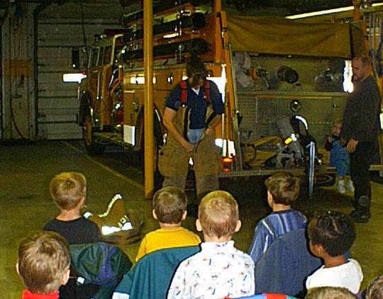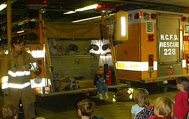 FR/FF Dan Baker,Donning FireGear w/Kids from The 1st Presbyterian Pre-School OCT 2000 For Fire Prevention